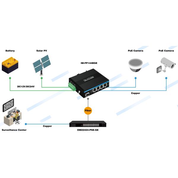 4-Port Solar Powered PoE Switch IM-FP144BGE 100/1000M Fiber 120W Dual DC12V/DC24V/DC48V Input Images |